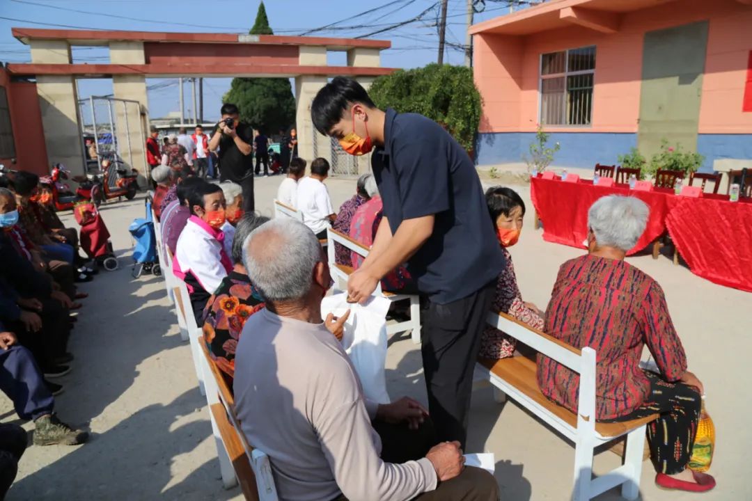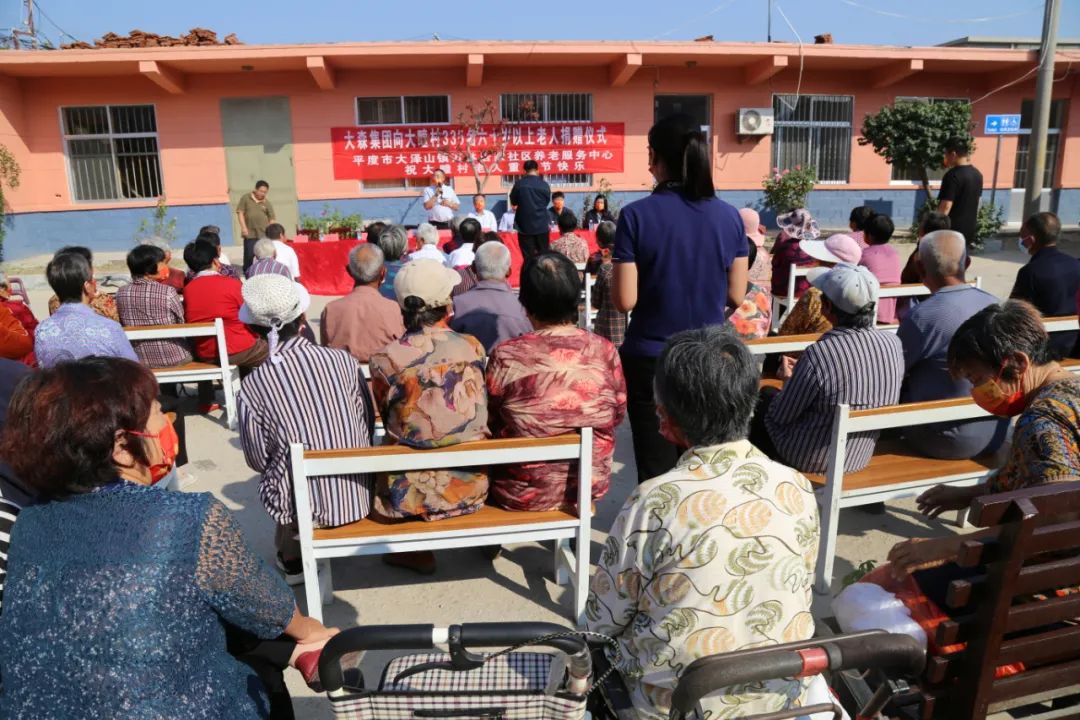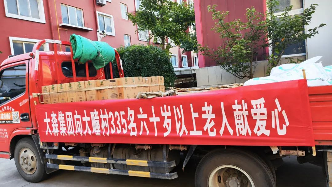 在“重阳节”到来之际,为弘扬中华民族传统美德,践行助老、敬老、爱老的优良传统。9月30日,大森酒业集团一行十多人,在公司副总经理张璐的带领下,来到大泽山镇大疃村,慰问了335名六十岁以上老人,进行爱心捐赠活动。大泽山镇党委书记王清祥、大疃村支部书记张杰等一起参加了捐赠活动。