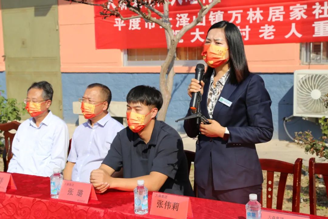 大泽山镇党委书记王清祥首先对到来的老人表达了节日的祝福,并对大森集团积极投身公益活动的社会担当表示赞赏,对关心帮助老人的善举表示衷心感谢。